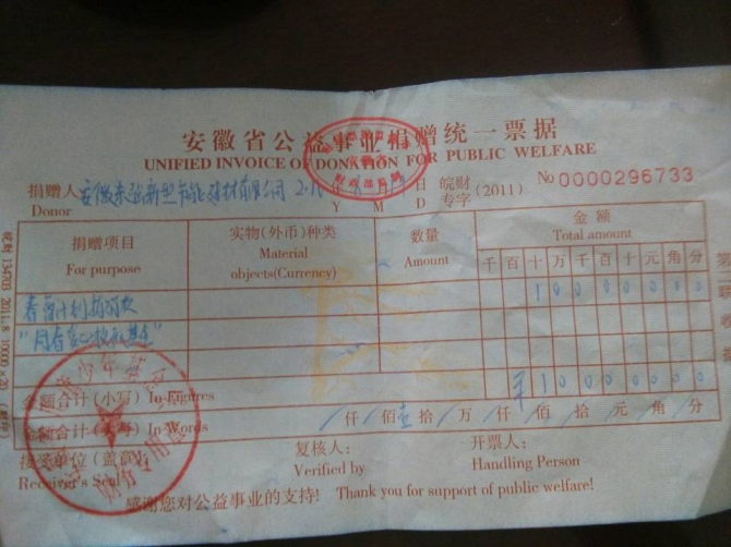 8月21日上午,由安徽省兒童少年基金會主辦的“讓愛聯(lián)盟”百企幫百孤助學(xué)行動啟動儀式在合肥舉行。安徽省人大常委會黨組副書記、副主任胡連松,安徽省婦聯(lián)主席黃紅、合肥市委常委、市委統(tǒng)戰(zhàn)部部長陳曉波、安徽省婦聯(lián)副巡視員昂朝霞、安徽省兒童少年基金會副理事長劉玉英、合肥市安慶商會會長劉同春、安徽東強(qiáng)新型節(jié)能建材有限公司總經(jīng)理劉邵東等出席儀式,來自安徽、山西、江西等地的百余名愛心企業(yè)家、愛心人士及受助的百名孤兒參加儀式。